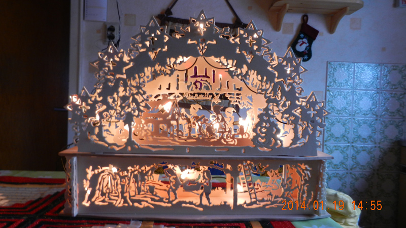 Für zwei Schwibbögen (Zwergenwerkstatt und Heilige Famile) finden Sie in unserem Shop die passende Laubsägevorlage. Ein weiterer Schwibbogen zeigt ein Dresdner Motiv.