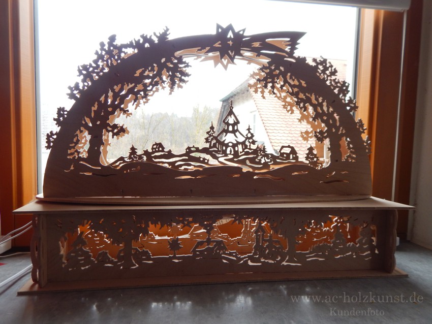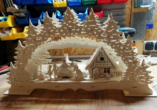 Herr K. aus Berlin hat neben der Waldpyramide mit Motor u.a. auch einfache und doppelte Schwibbogen nach Vorlagen aus unserem Shop hergestellt. Vielen Dank dafür.