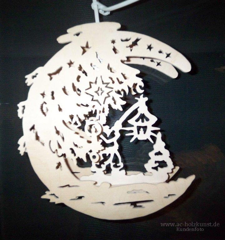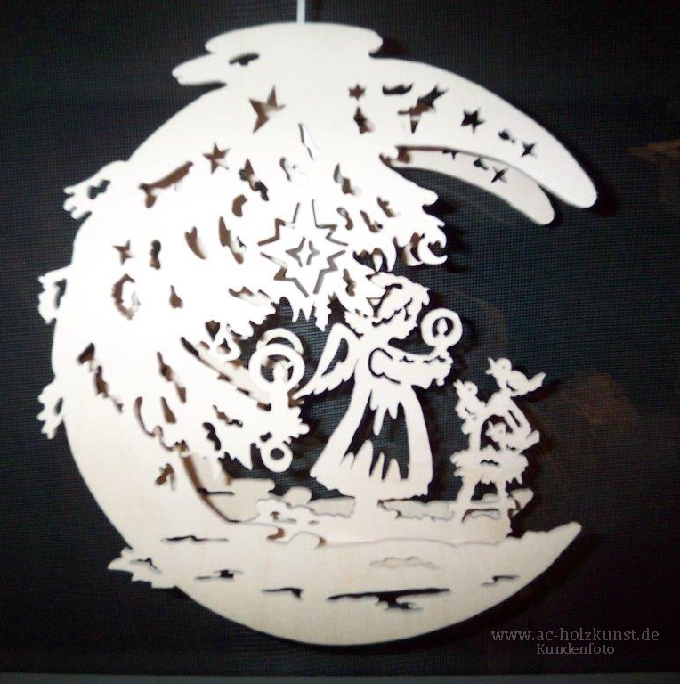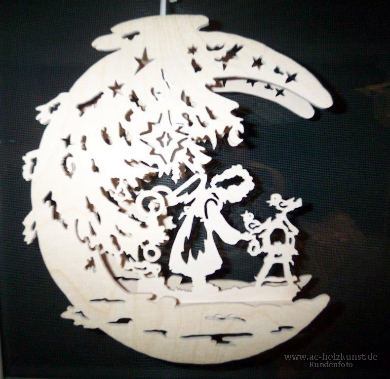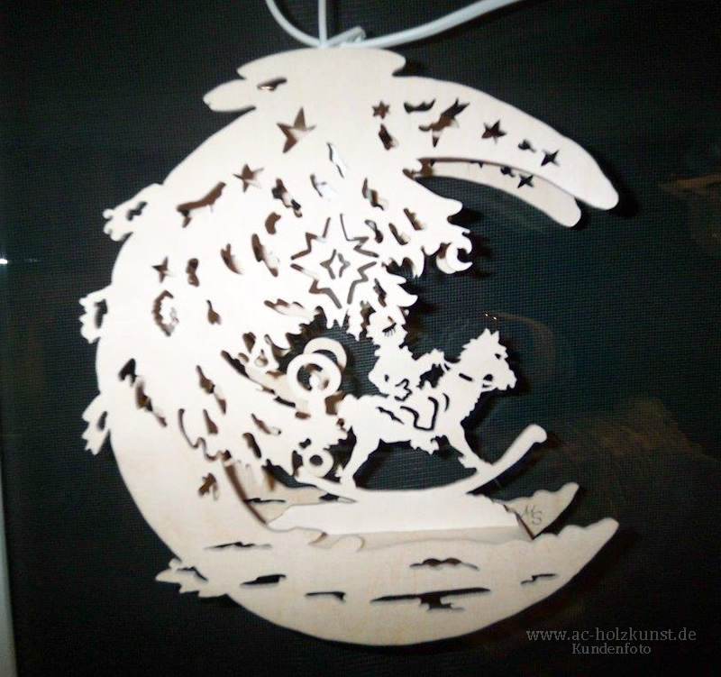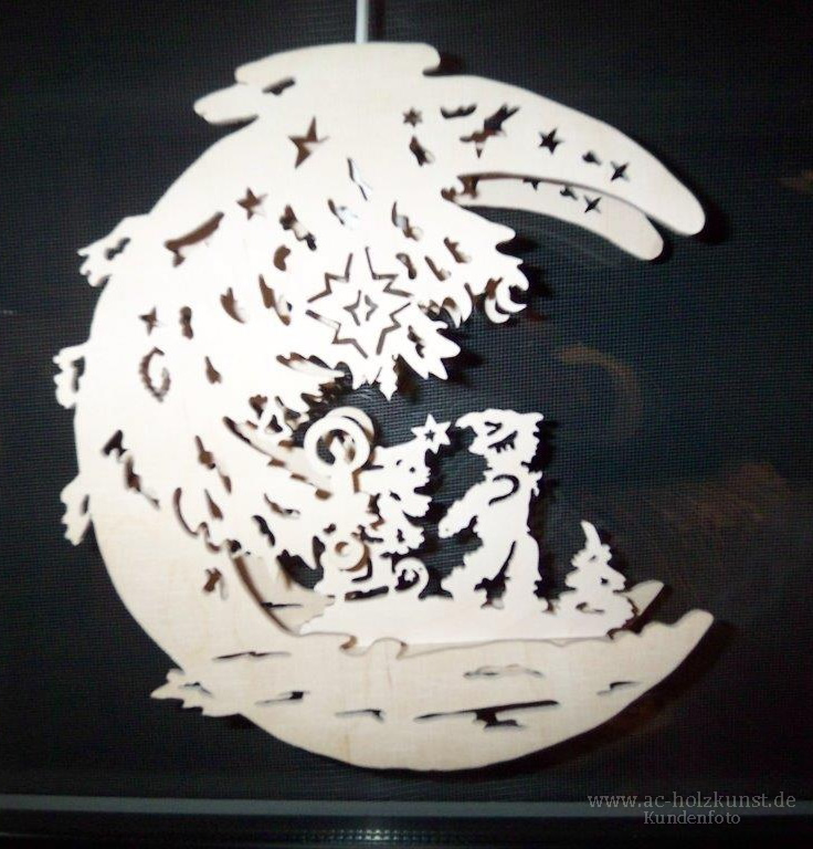 Neben den vielen schönen Weihnachtspyramiden und Schwibbögen der Fam. Meyer, heute mal Fensterbilder mit verschiedenen Motiven in Mondform und Sternentaler.