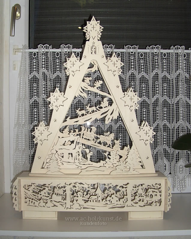 Herr H. aus Castrop-Rauxel hat sich ja schon mit einigen schönen Arbeiten an unserer Galerie beteiligt. Hier eine weitere schöne Laubsägearbeit mit einer LED-Beleuchtung.