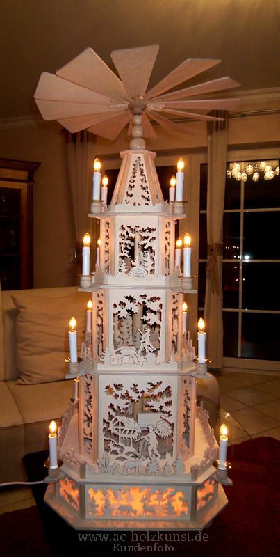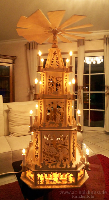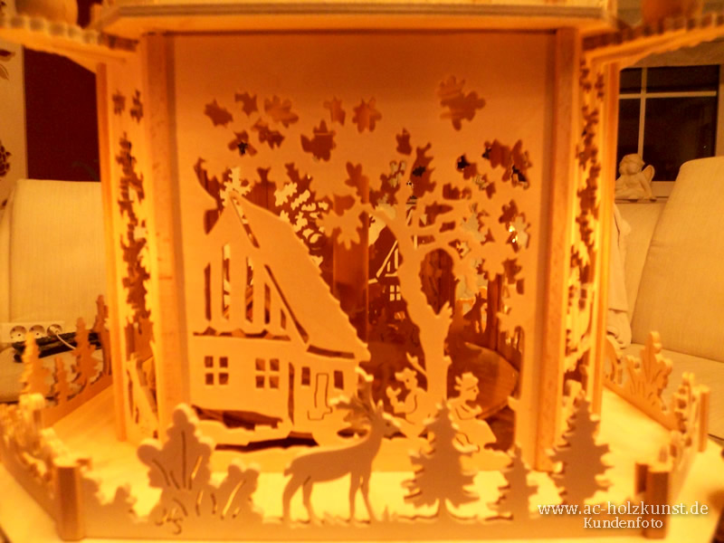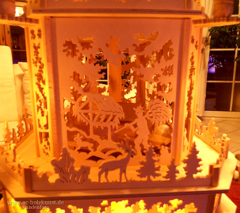 Info Frau Meyer: „Diese Pyramide ist ein Schmuckstück. Man kann lange davor sitzen und man entdeckt immer wieder etwas neues. Es sind wunderschöne Motive. Sie ist einfach bezaubernd.