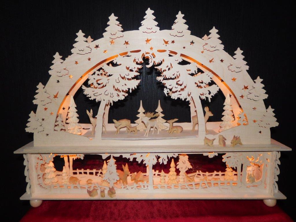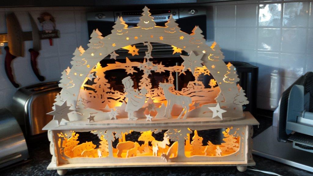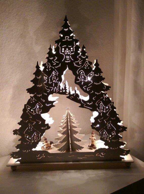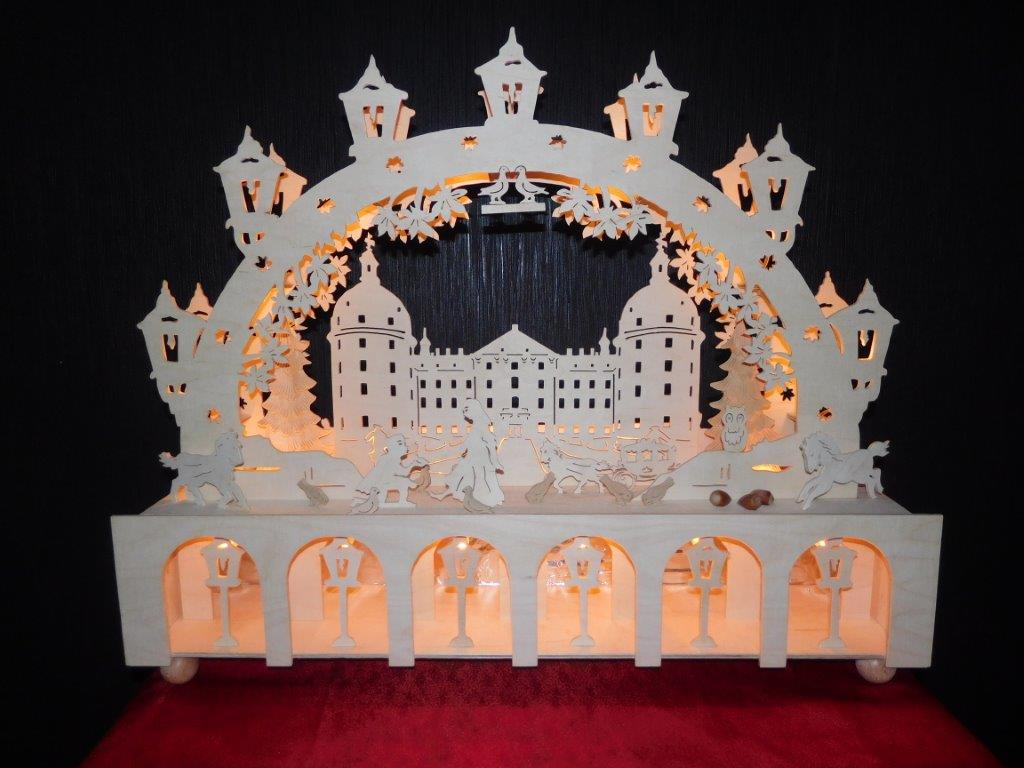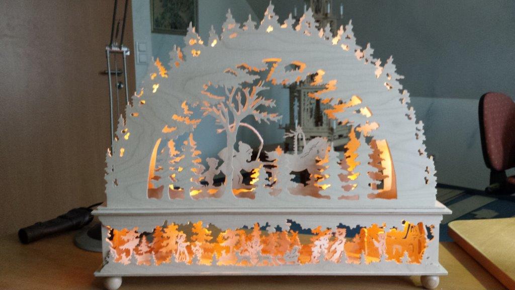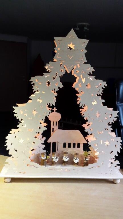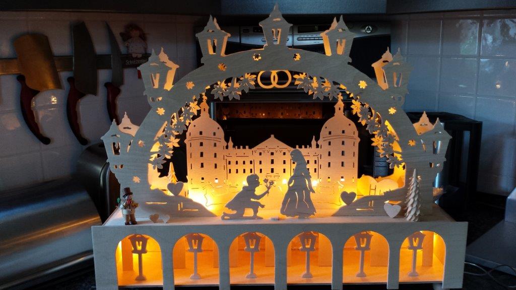 Von Fam. Meyer haben wir schon einige sehr schöne Fotos erhalten. Grundlage der meisten Schwibbögen oder Pyramiden sind, Vorlagen aus unserem Webshop. Fast immer fließen eigene kreative Ideen in die Umsetzung mit ein.