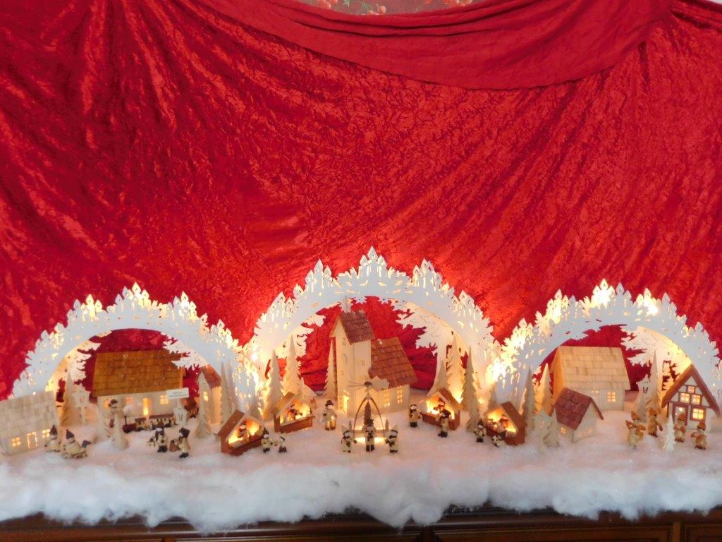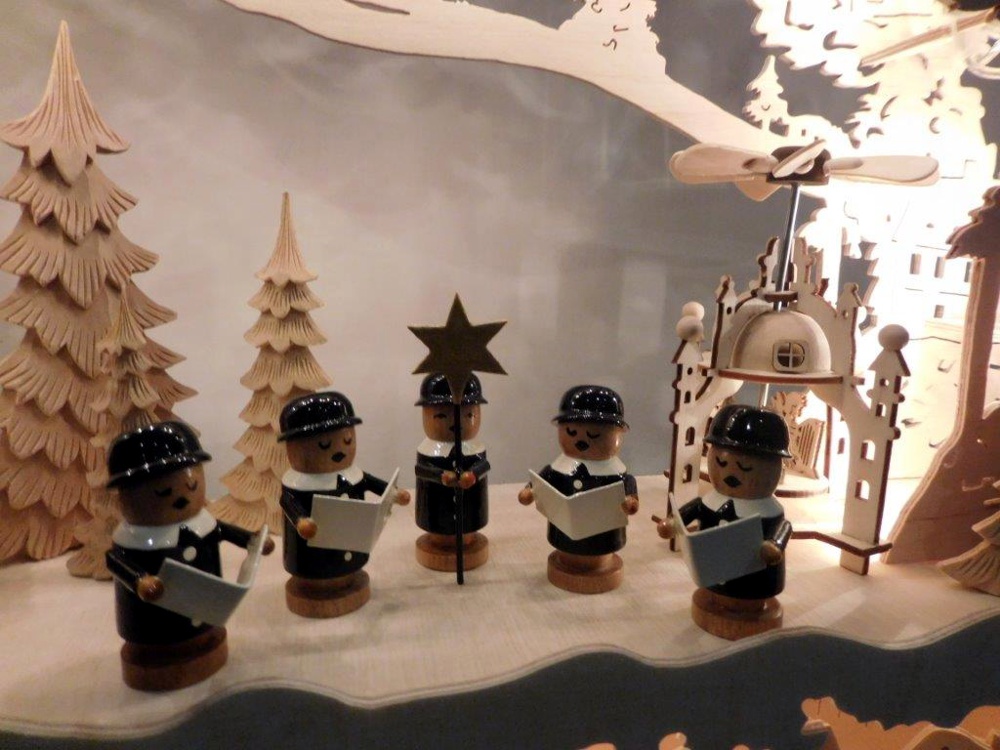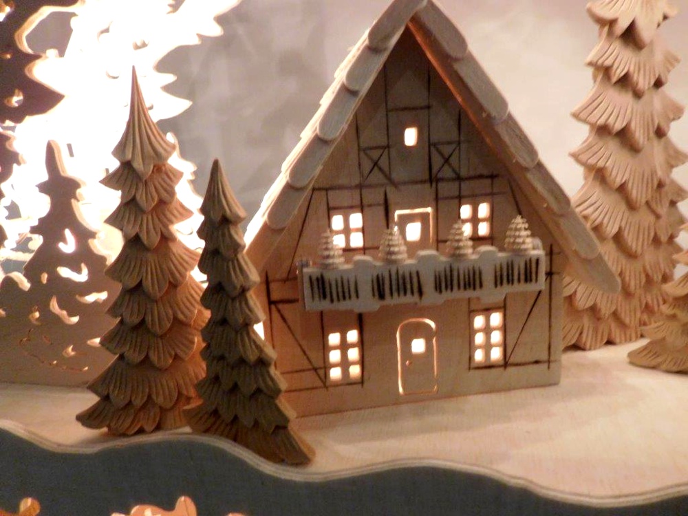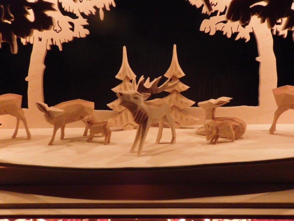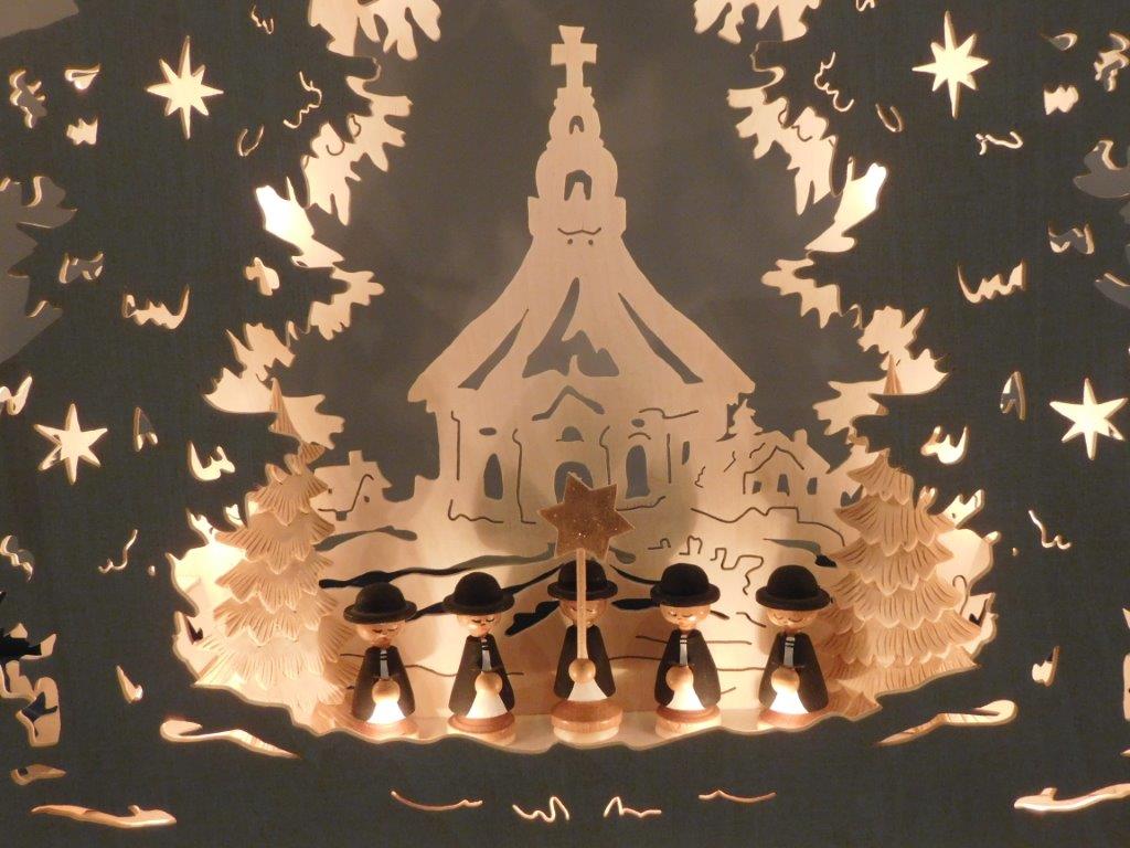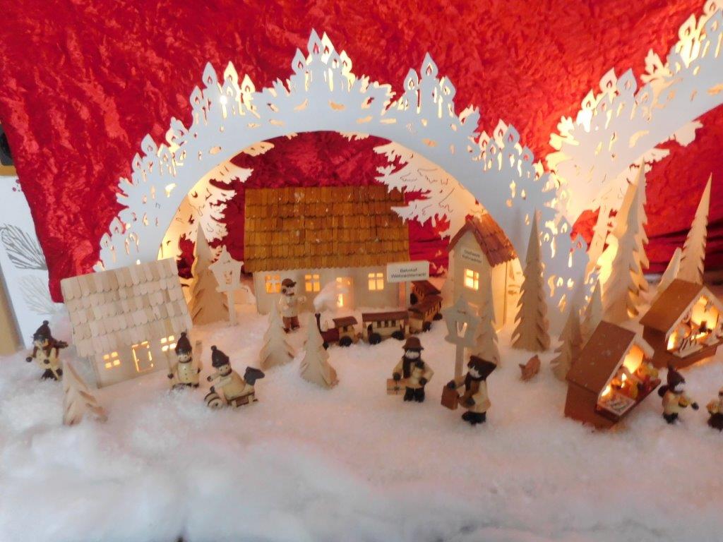 So finden sich oft kleine Holzfiguren aus dem Erzgebirge, eigene Sockelmotive (Unterbau) oder spezielle Lichtideen in den Arbeiten wieder.
