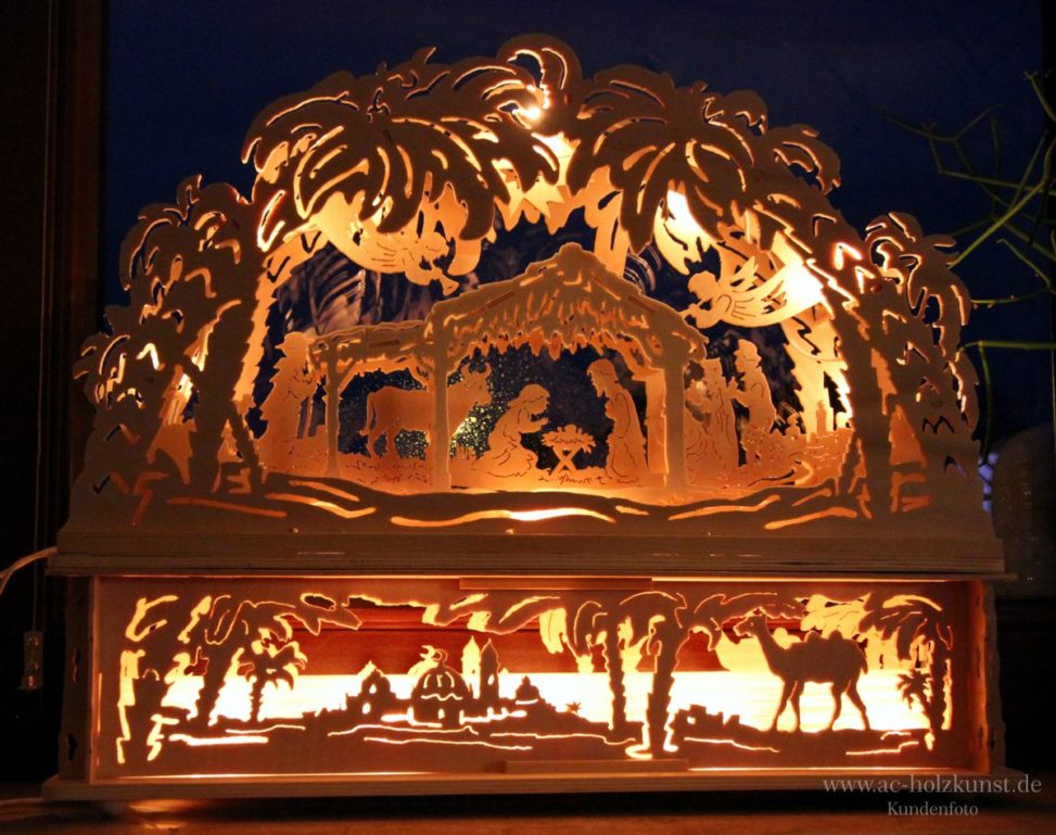 Die Einsendung von Herrn Dr. M. zeigt den Schwibbogen „Heilige Familie“ mit Sockel. Größe: 50cm.