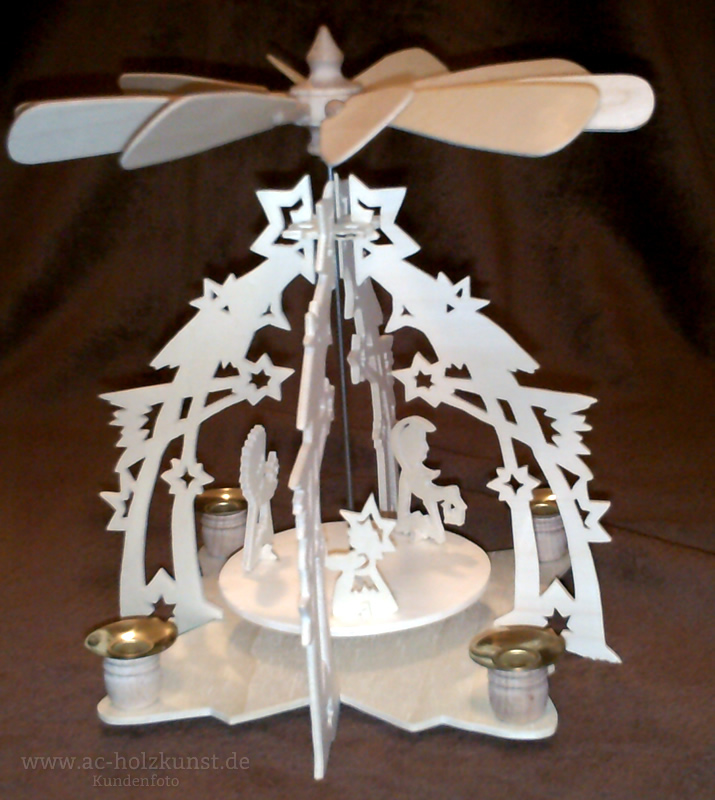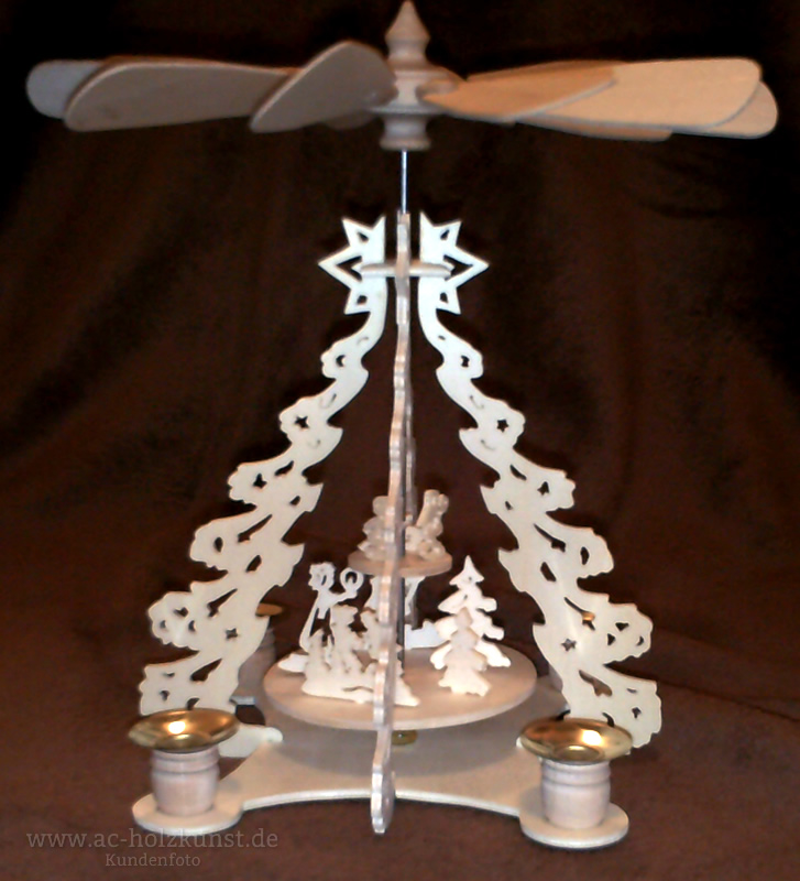 [Artikel: 1026] Laubsägevorlage für eine weihnachtliche Tischpyramide mit zwei Motiven: Tannenbaum und Sonne, Mond und Sterne. Ideal für kreative Bastelprojekte und a…