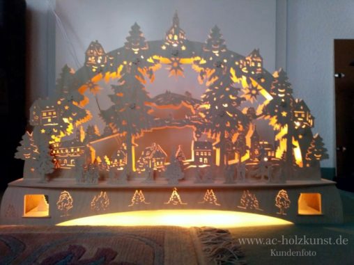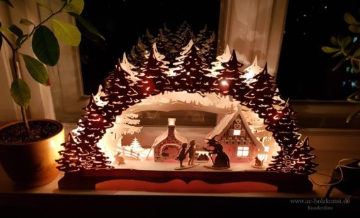 Herr K. aus Berlin hat neben der Waldpyramide mit Motor u.a. auch einfache und doppelte Schwibbogen nach Vorlagen aus unserem Shop hergestellt. Vielen Dank dafür.