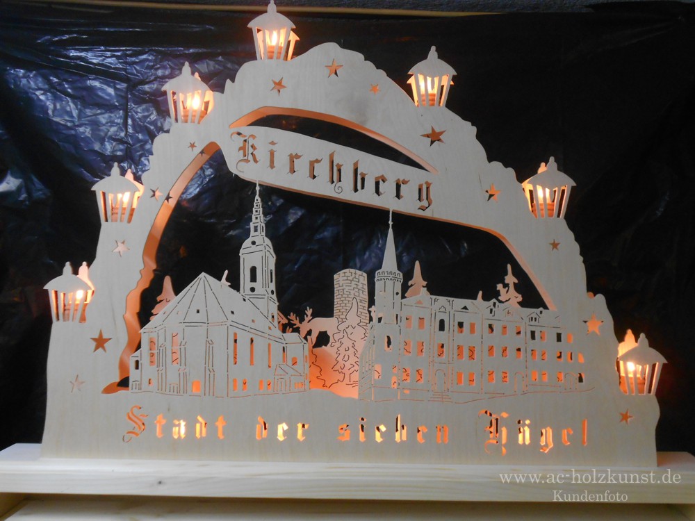 Schwibbögen mit versch. Städtemotiven hergestellt mit der Handlaubsäge. Vielen Dank an Herrn T.