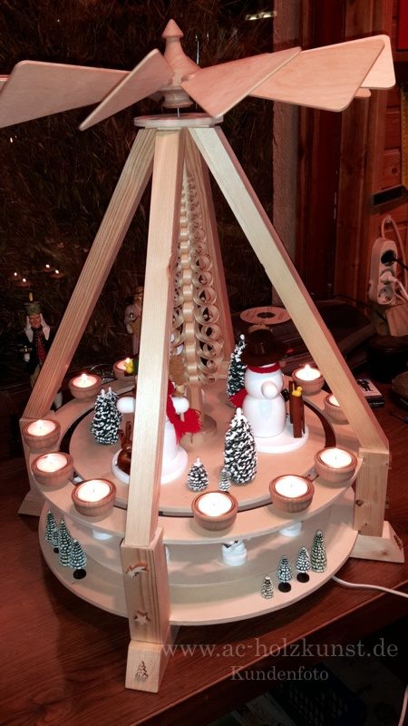 Erzgebirgische Weihnachtspyramide mit Motor und LED-Beleuchtung