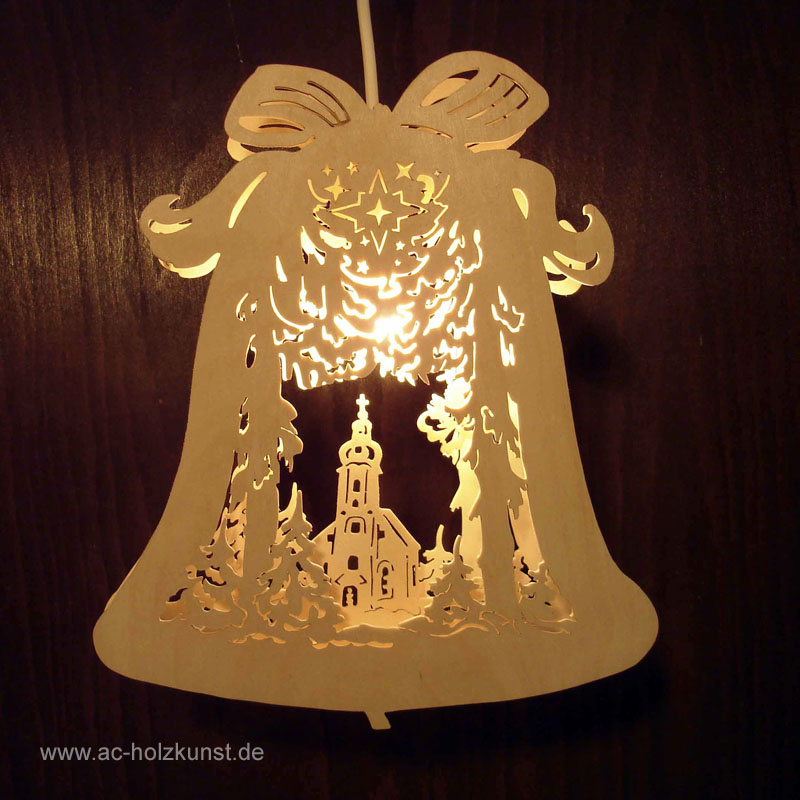 [Artikel: 1036] Bauplan/ Vorlage für 3D-Lichterbaum mit Kurrende und Kirchenmotiv. Größe: 42 cm, bestehend aus zwei Blenden. Indirekte Beleuchtung durch 10er Lichterk…
