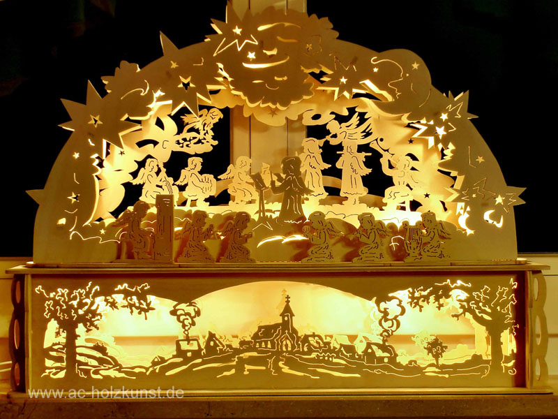3D-Dreiecksleuchter Seiffener Kirche Kurrende mit 3 Blenden