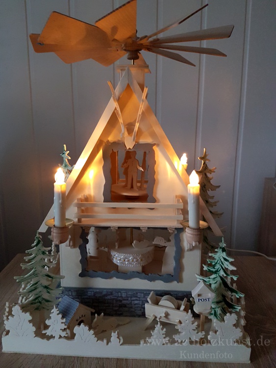 möchte ihnen gerne eine neue Arbeit von mir vorstellen. Dieses Mal die Waldhauspyramide mit LED Kerzen und  Motor.