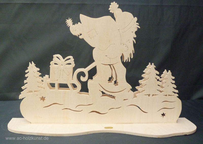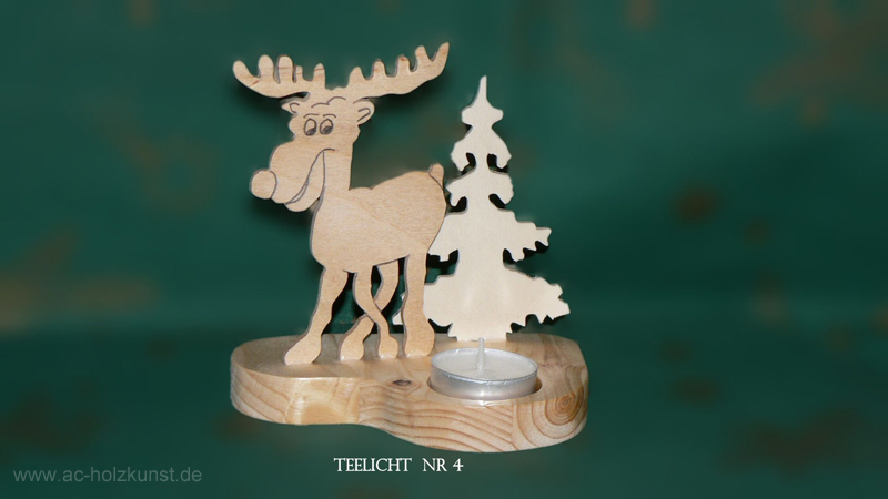 Das nächste Bild ist eine Krippe auch mit LED Beleuchtung 12V. Dann folgen 2 Standbilder ( Nikolaus mit Schlitten und Schneemann mit Kind und Reh, natürlich mit Led Beleuchtung 12V. Zum Schluss noch ein Bild , es ist ein Teelichthalter ( Lustiges Rentier mit Tanne – Teelicht Nr.4.“